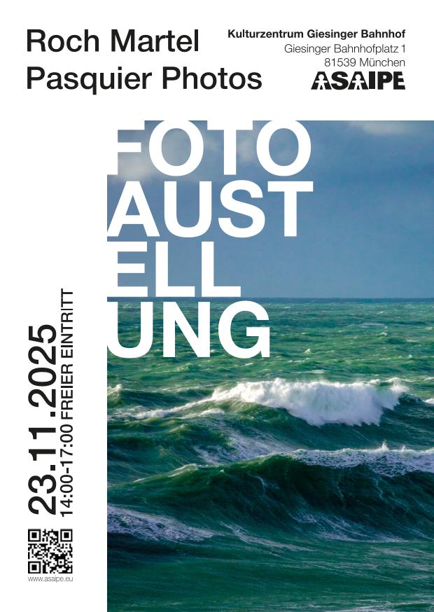 Anlässlich des Beginns einer neuen Partnerschaft im Bereich der professionellen Fotografie freuen wir uns, ihre Werke in der Vorweihnachtszeit vorstellen zu dürfen. Die ausgestellten Fotografien sind außerdem käuflich zu erwerben; der Erlös kommt der ASAIPE zugute, einem Verein, der sich für sozial und beruflich benachteiligte Französinnen und Franzosen einsetzt.